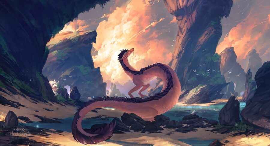 O Grande Panda mascava as folhas secas que o seu amigo Guaxinim lhes havia entregado antes de entrarem no barco. As folhas ajudavam-no a não se sentir enjoado com os solavancos da navegação e, assim, podia relaxar e apreciar a viagem O Jovem Dragão, sendo também um rápido nadador, por vezes saltava para a água e nadava junto ao barco ou subia para o ar e voava próximo dele. Não tinha sentido a necessidade de mascar as folhas, enquanto atravessavam o mar, pois bastava-lhe variar entre estar dentro do barco ou mover-se fora dele.